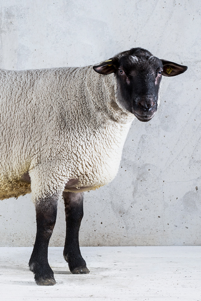 Das Suffolkschaf ist ein mittelgroßes Schaf mit einem tiefschwarzen, unbewollten und hornlosen Kopf...
